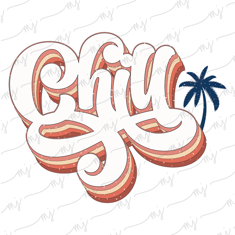 Embrace relaxation and leisure with our "Chill" retro design product, featuring a palm tree! This laid-back, vintage-inspired design is perfect for those who value tranquility, downtime, and the beauty of nature. Choose from Direct to Film (DTF), Sublimation, or Glitter DTF Transfer options to create your perfect customized apparel or accessory.