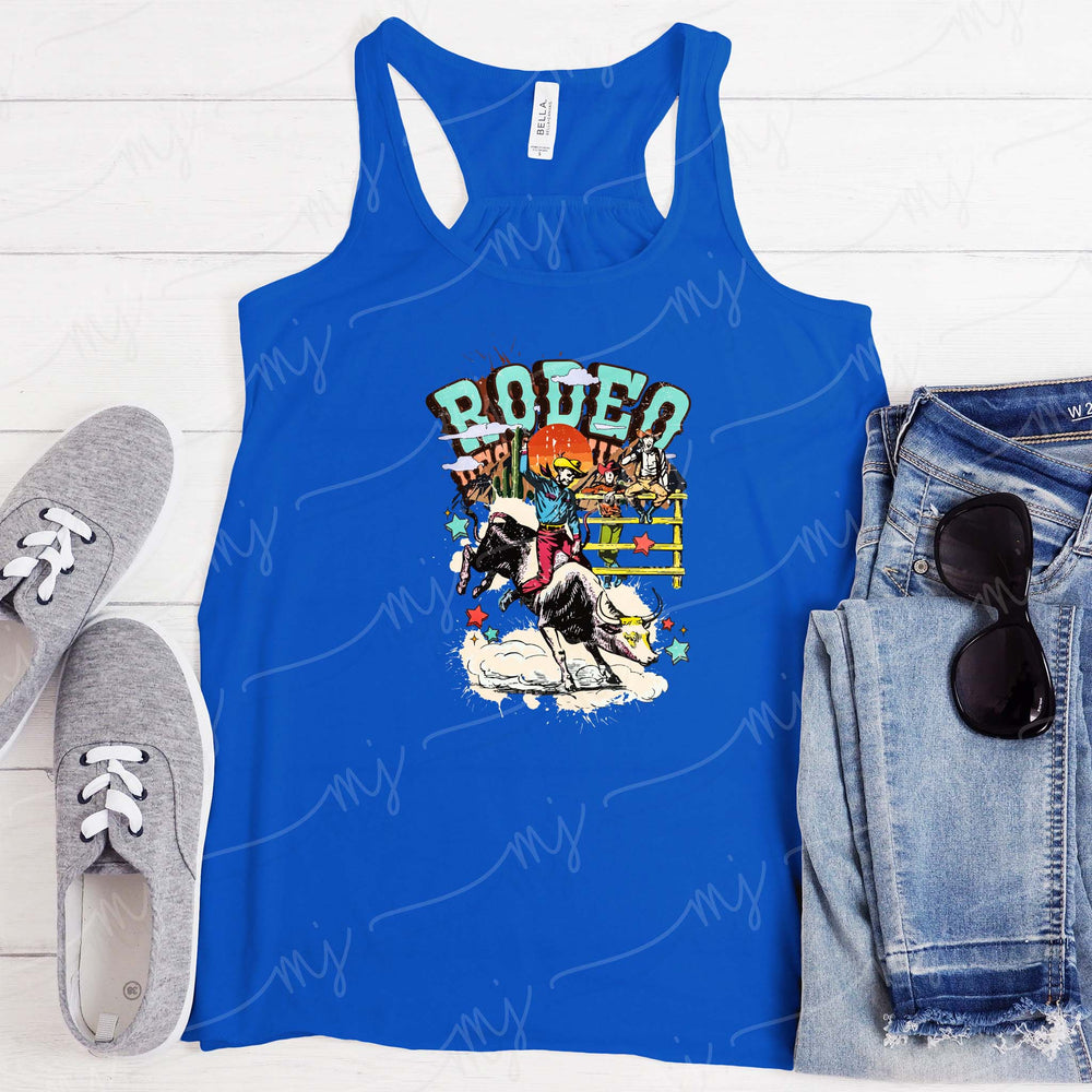 Celebrate your love for the thrilling sport of rodeo with our "Rodeo" retro style design transfer, featuring a cowboy riding a steer! Order yours today and create a personalized piece that perfectly captures your passion and nostalgia for the exciting world of rodeo.